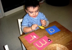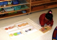 I-Spy games, sand paper letters, puppet shows, talking stick, stories, and logical puzzles are all used to make the child interested in language.